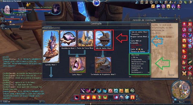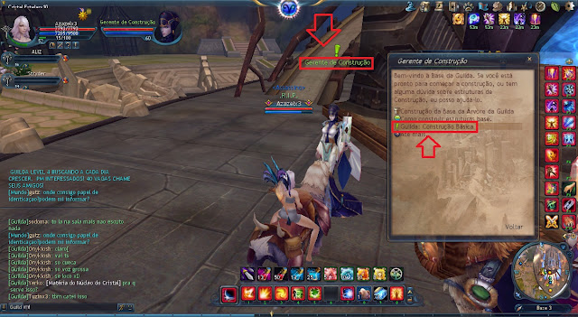 Para ativar as Quests de Construção basta novamente você ter os cartões na sua bag e ir no npc “Gerente de Construção” e pegar as Quest “Guilda: Construção Básica” (Img.7). Assim que a pontuação nescessaria de quests for atingida basta o lider da Guild ir no npc e levantar a Construção, essas quests de construção estarão apenas liberadas do momento em que a construção for ativada até o momento em que ela atingir a meta de quests.